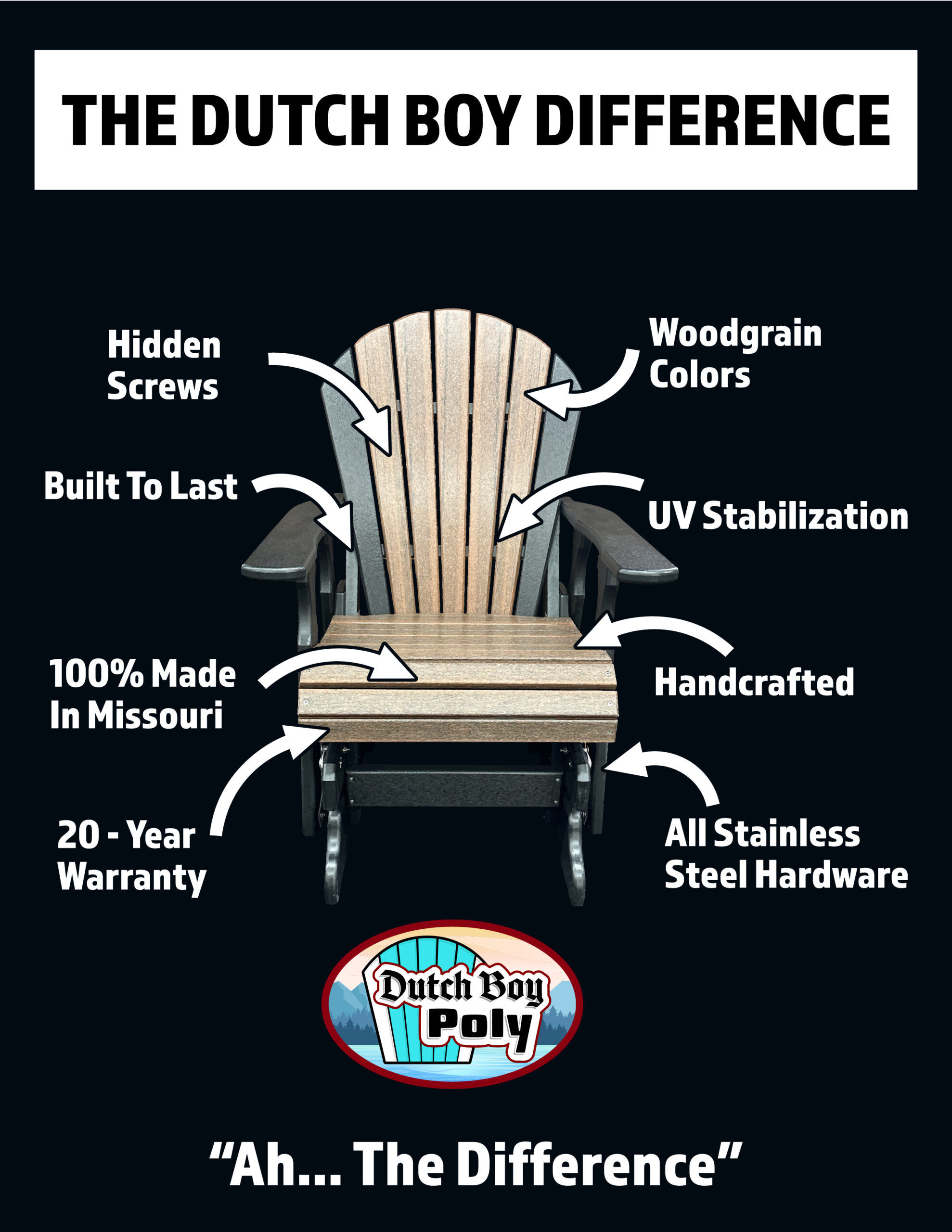 Hello, We would like to thank you for choosing Dutch Boy Poly where we put quality of craftsmanship and perfection first. We value relationships with our customers and also the ones you might create with others while sitting in our furniture! We would greatly appreciate if you would drop us a review so you others can hear your side of the story of the Dutch Boy difference. Thank you for visiting our website.