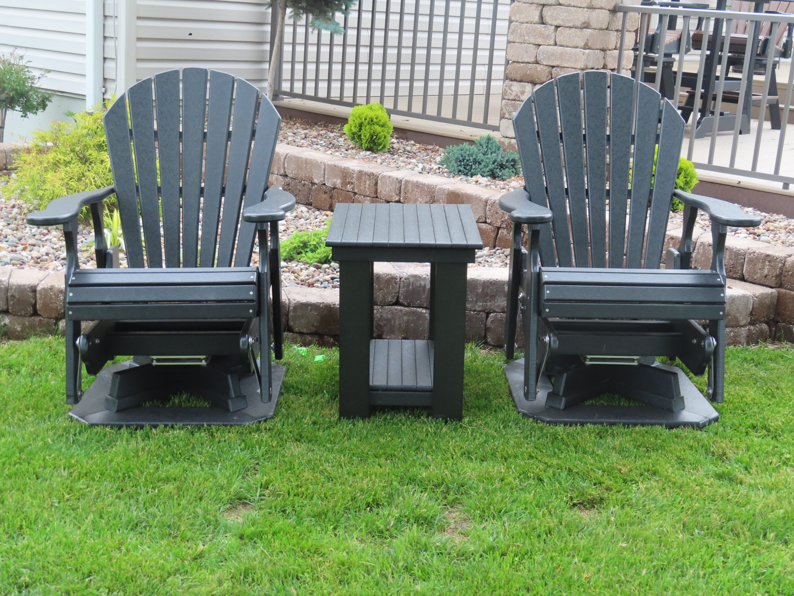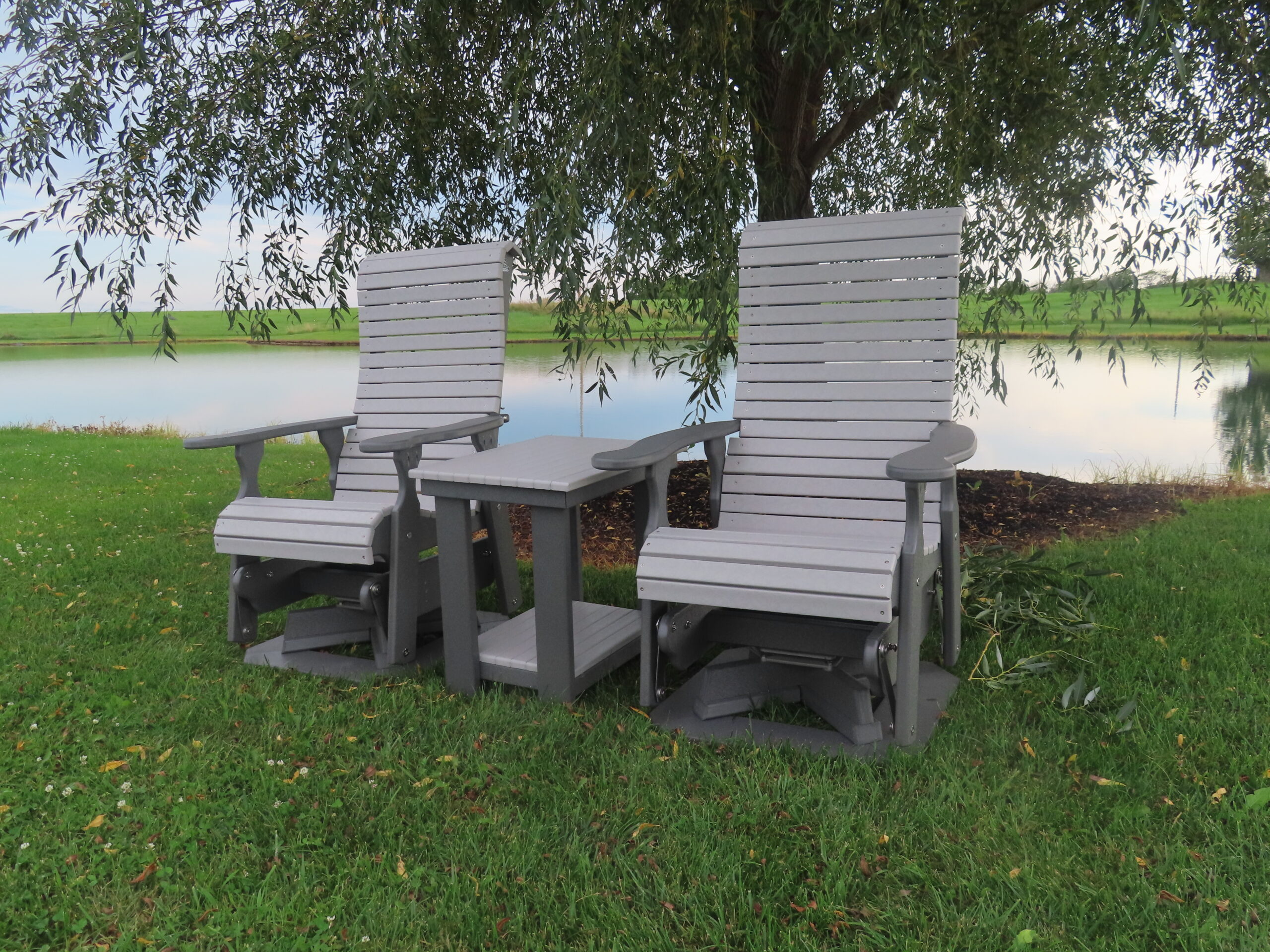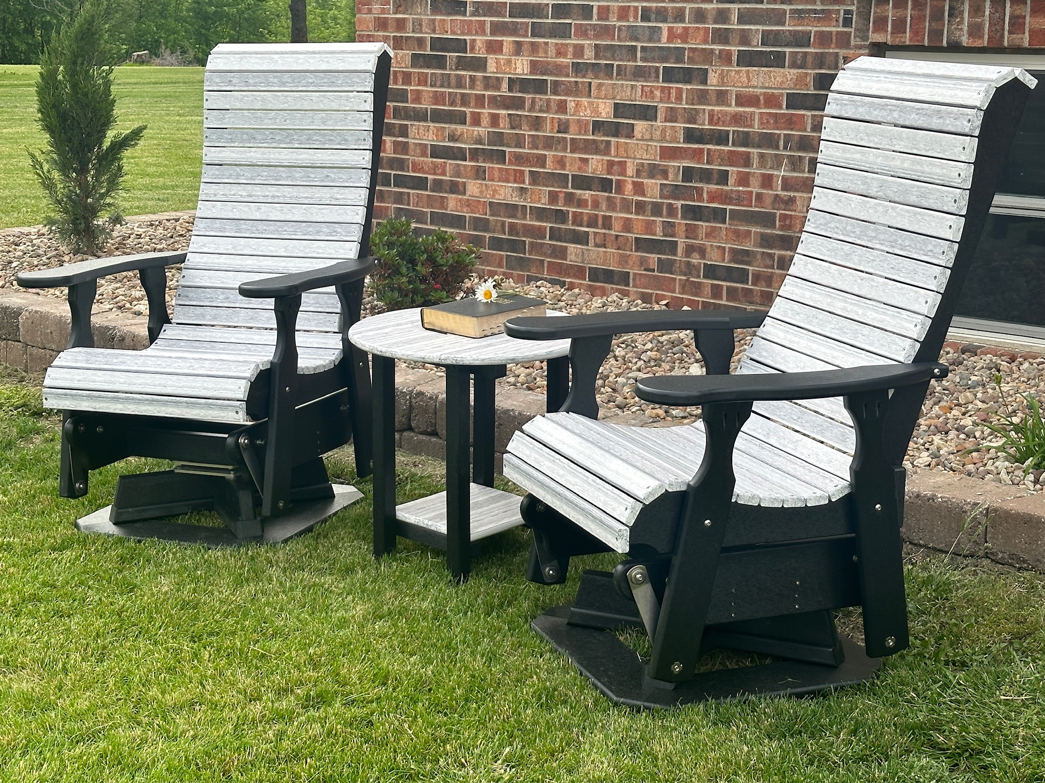 2-Lt Gray on Slate Rollback Swivel Gliders with Accent Table