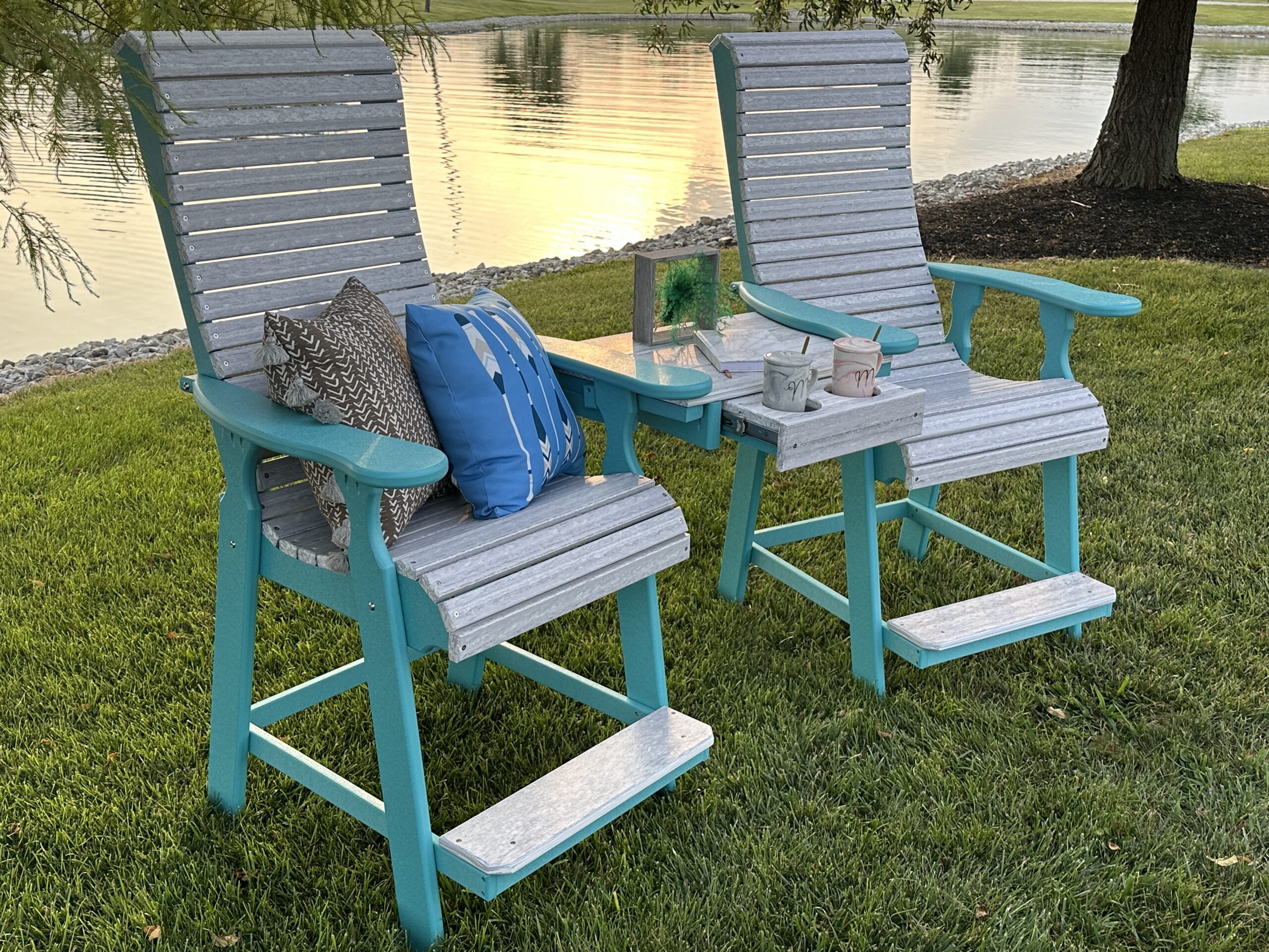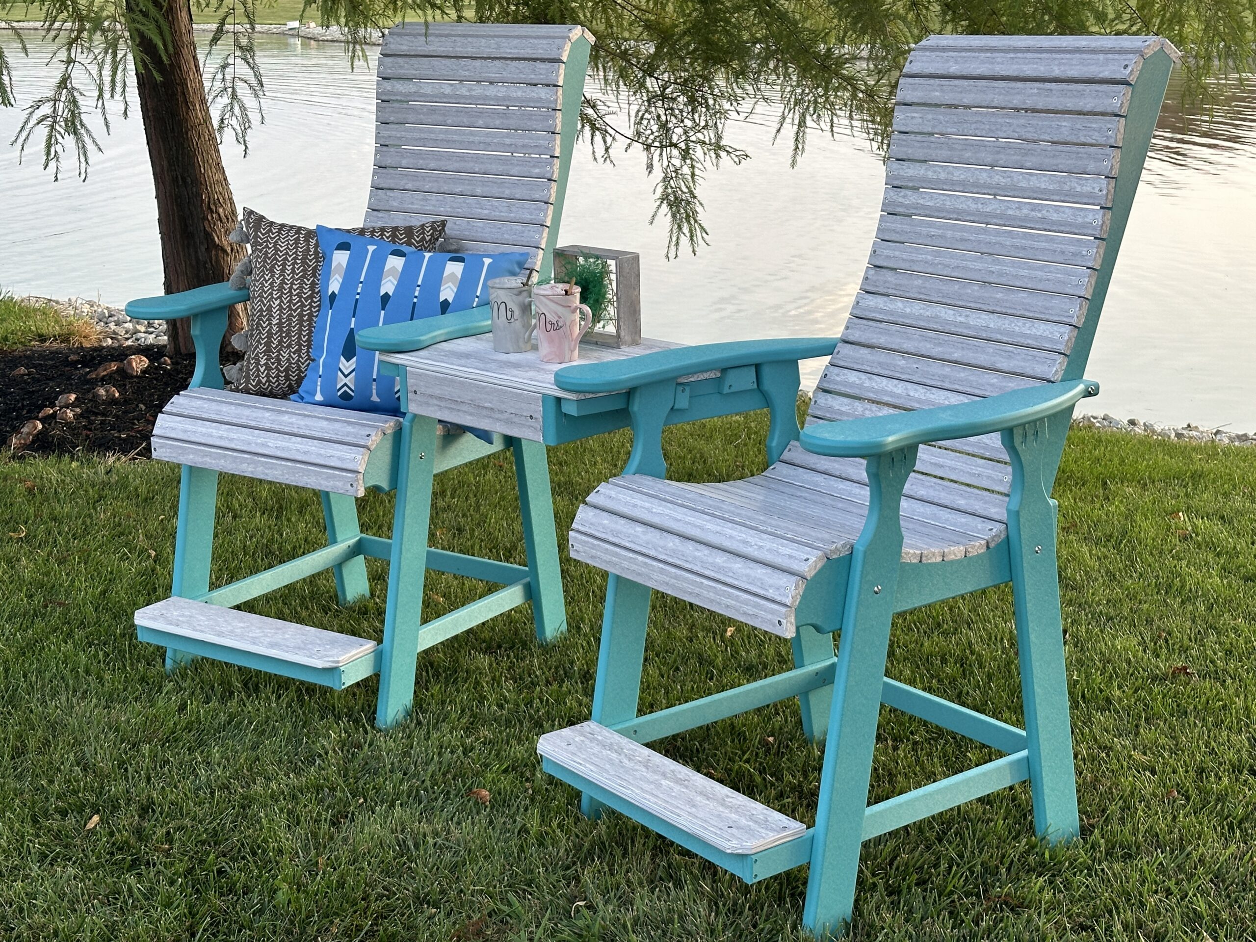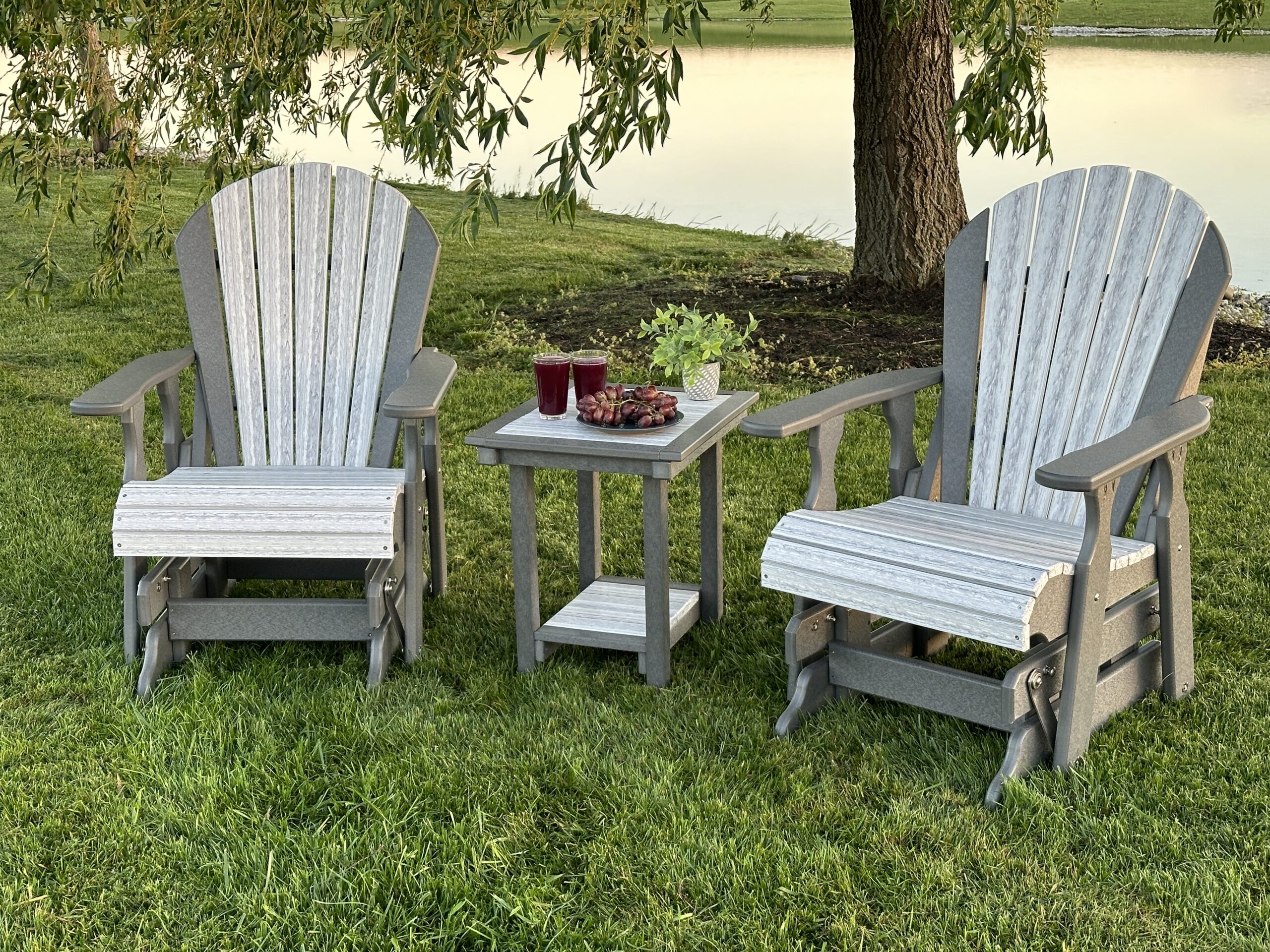 2-Lt Gray on Slate Rollback Swivel Gliders with Accent Table