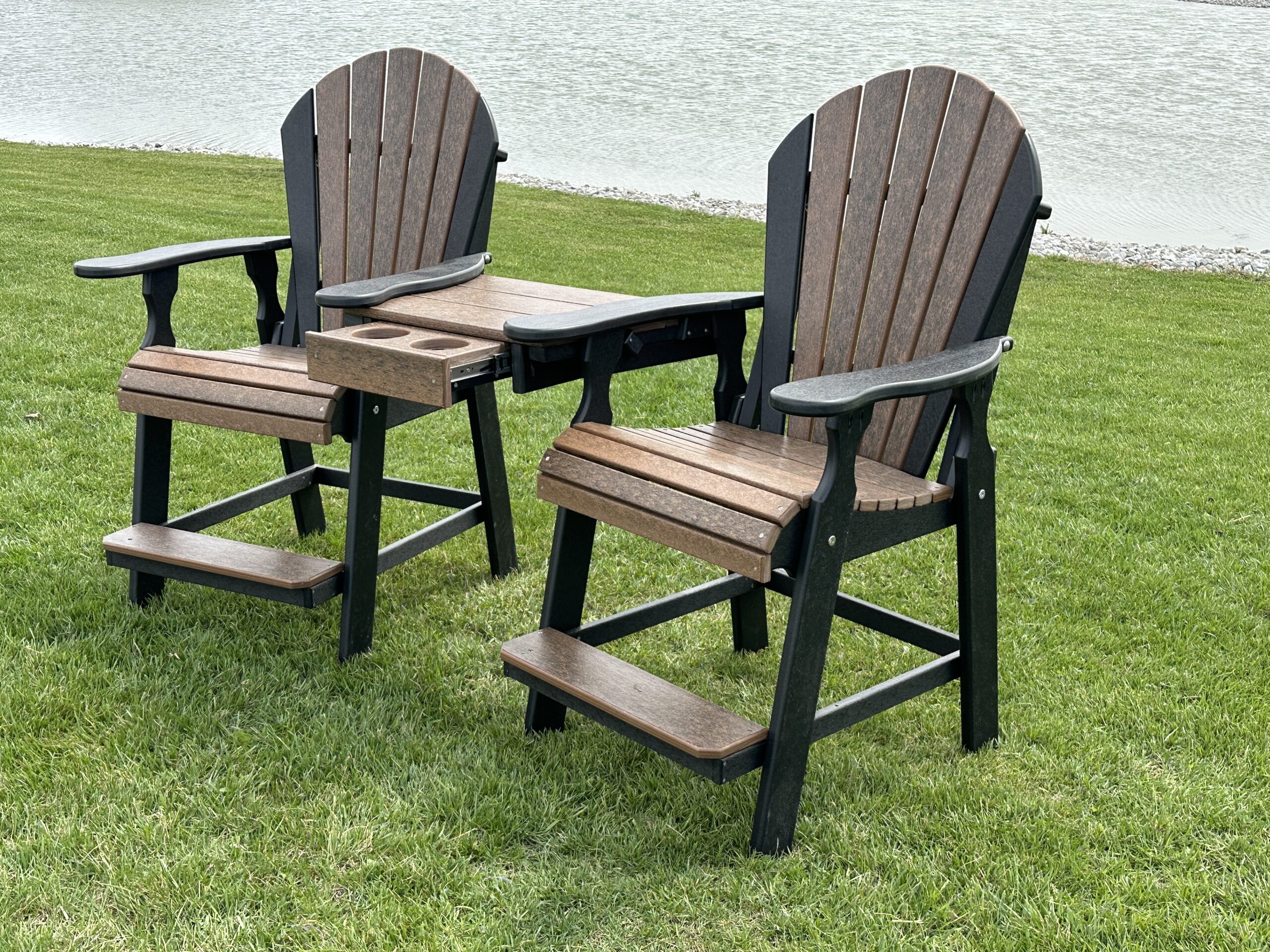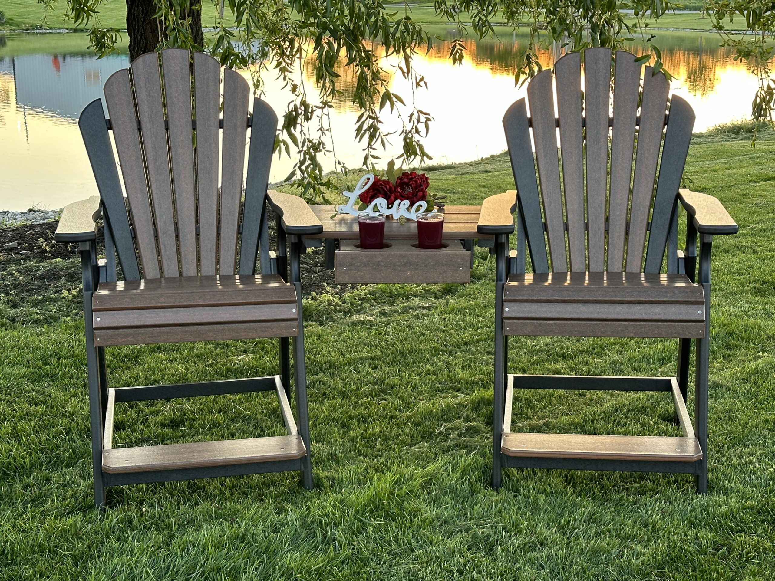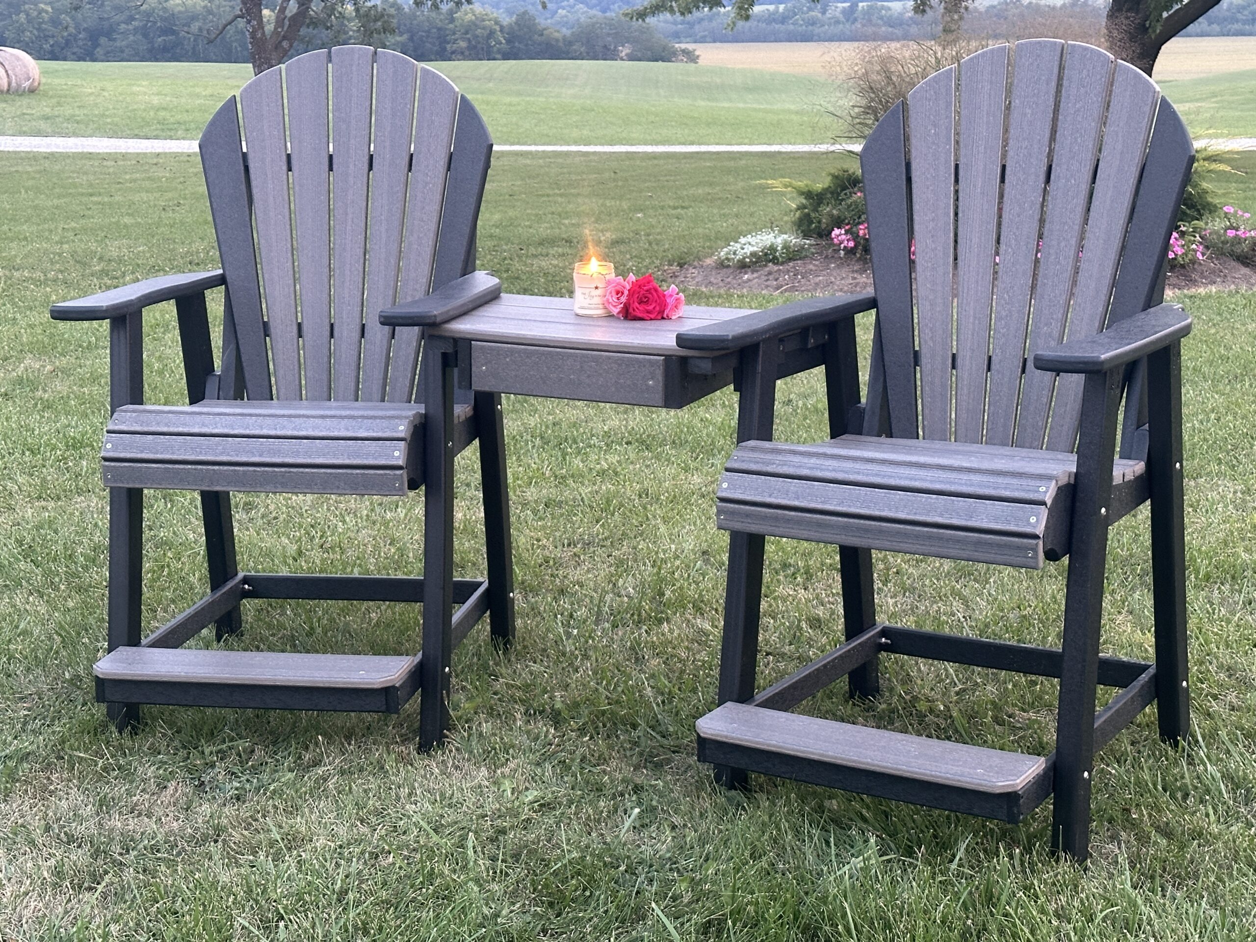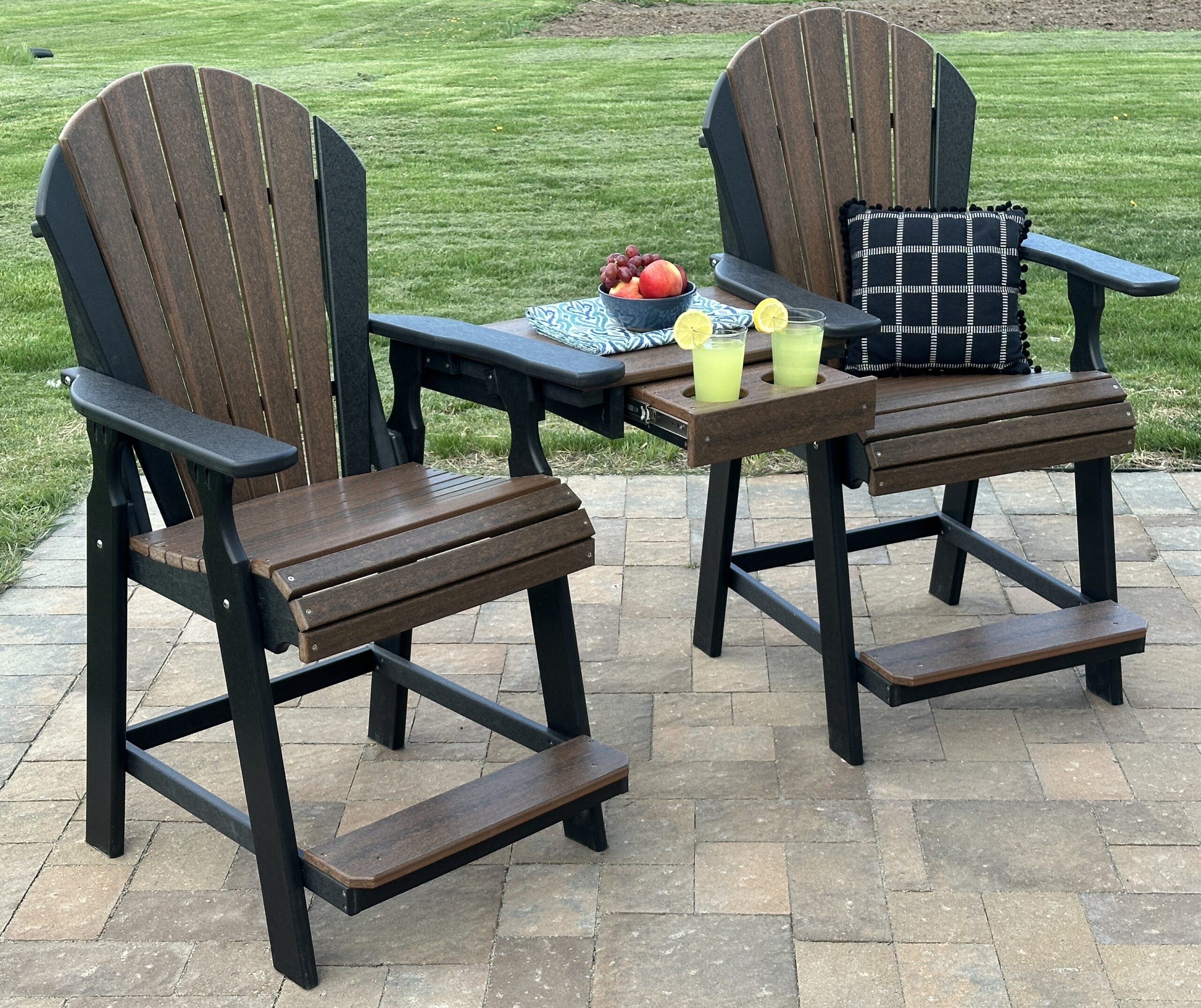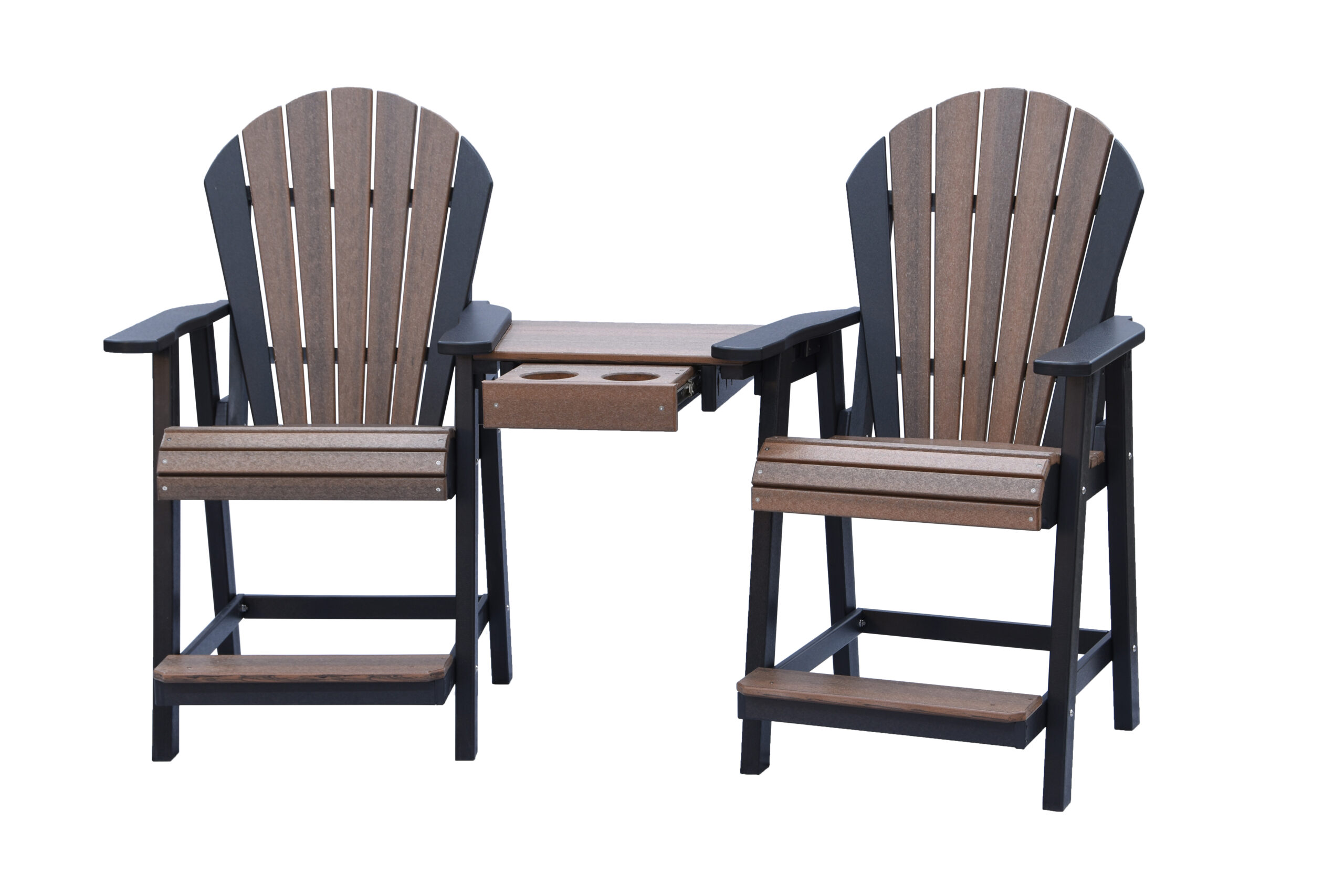 Stone on Black Adirondack Settee with Cupholders Counter Height