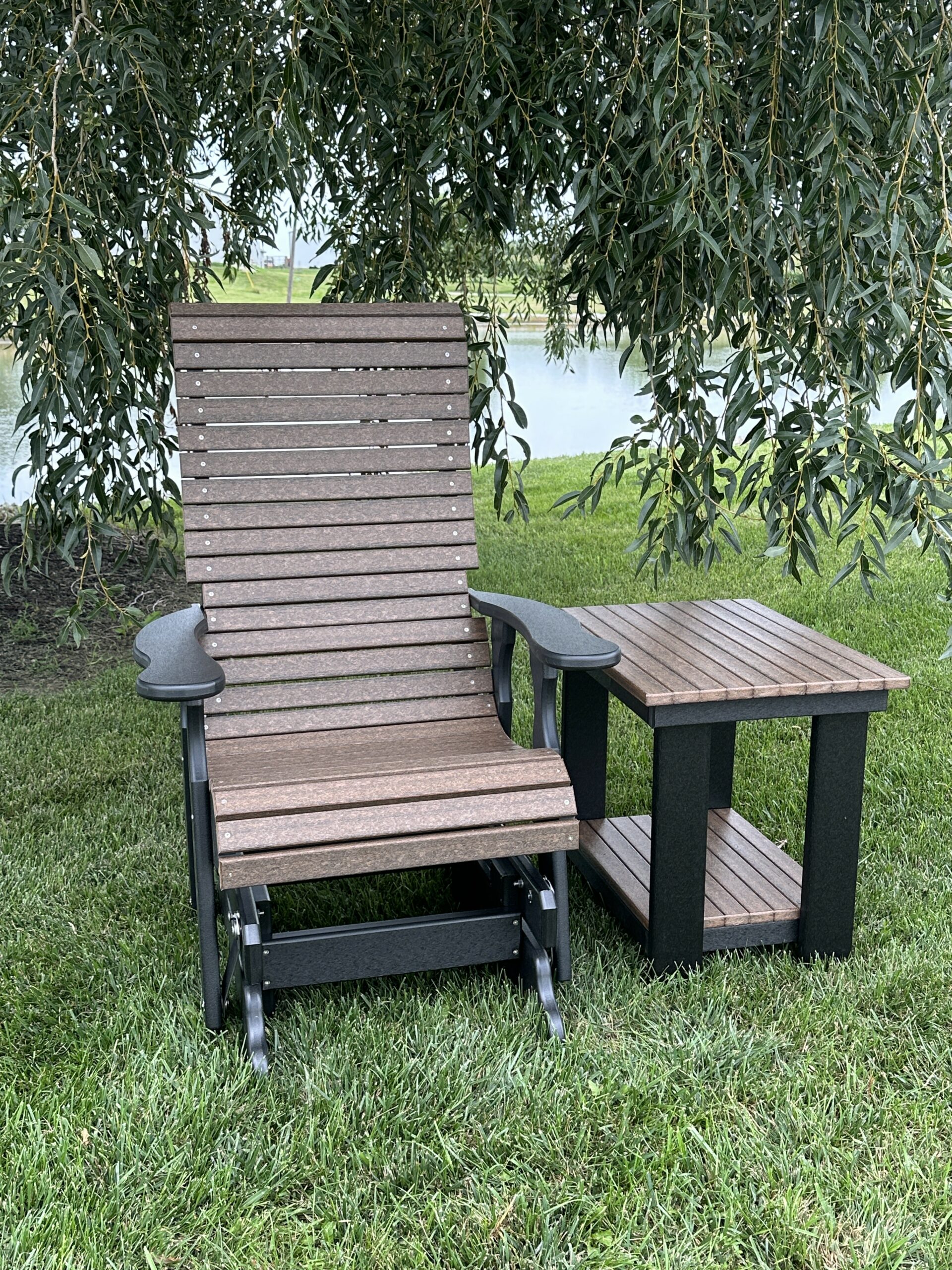 Antique Mahogany on Black Ad Swivel Glider with Table