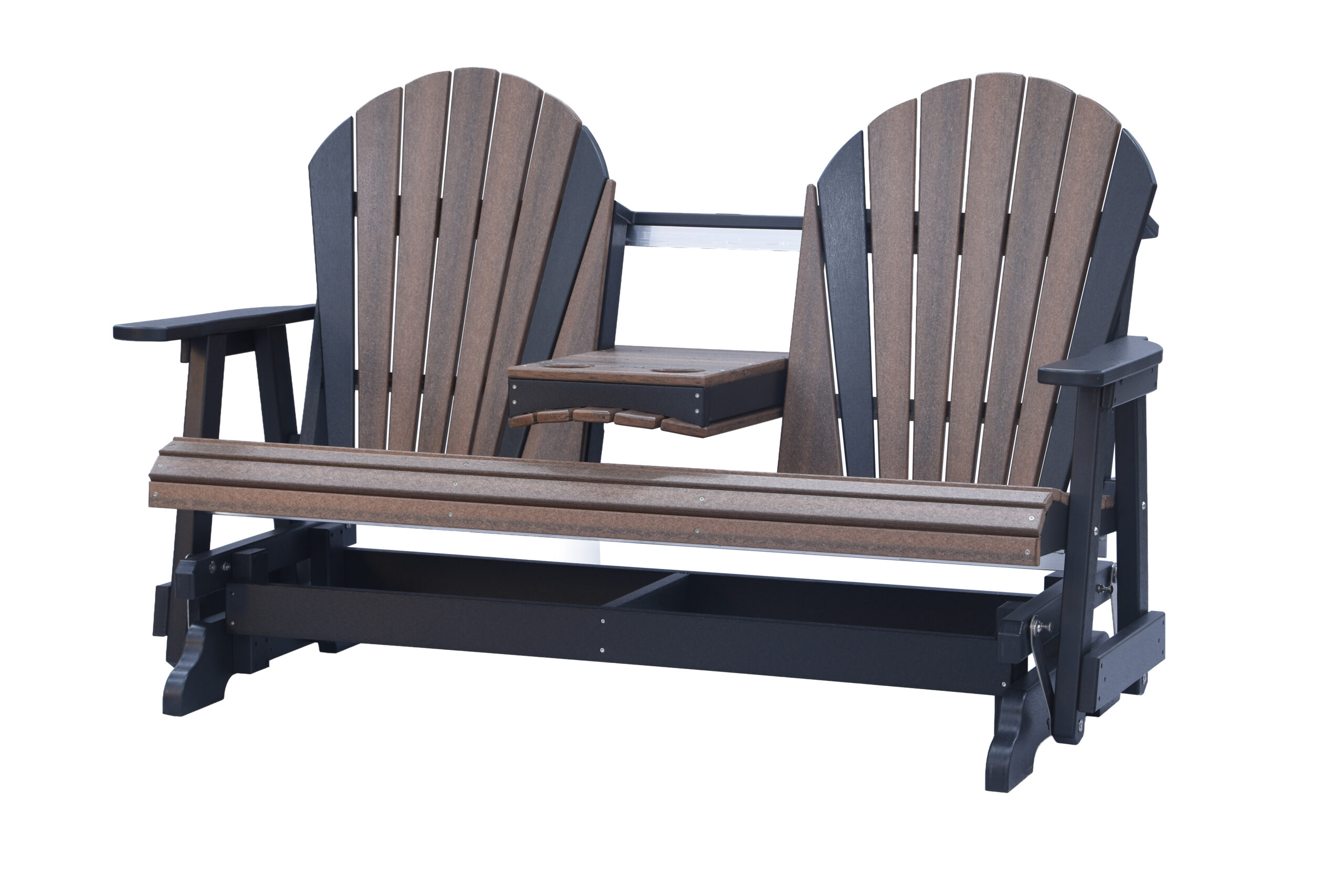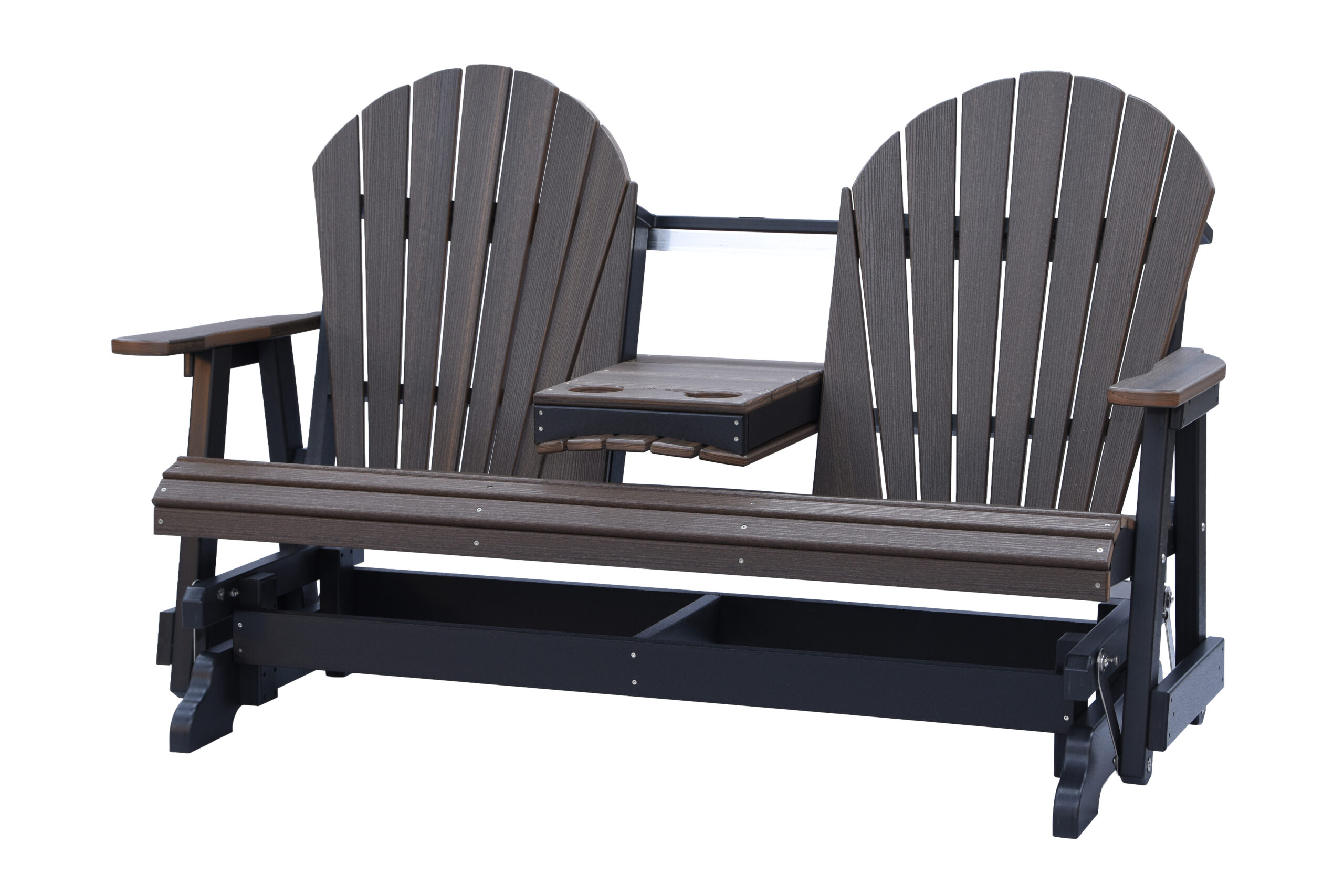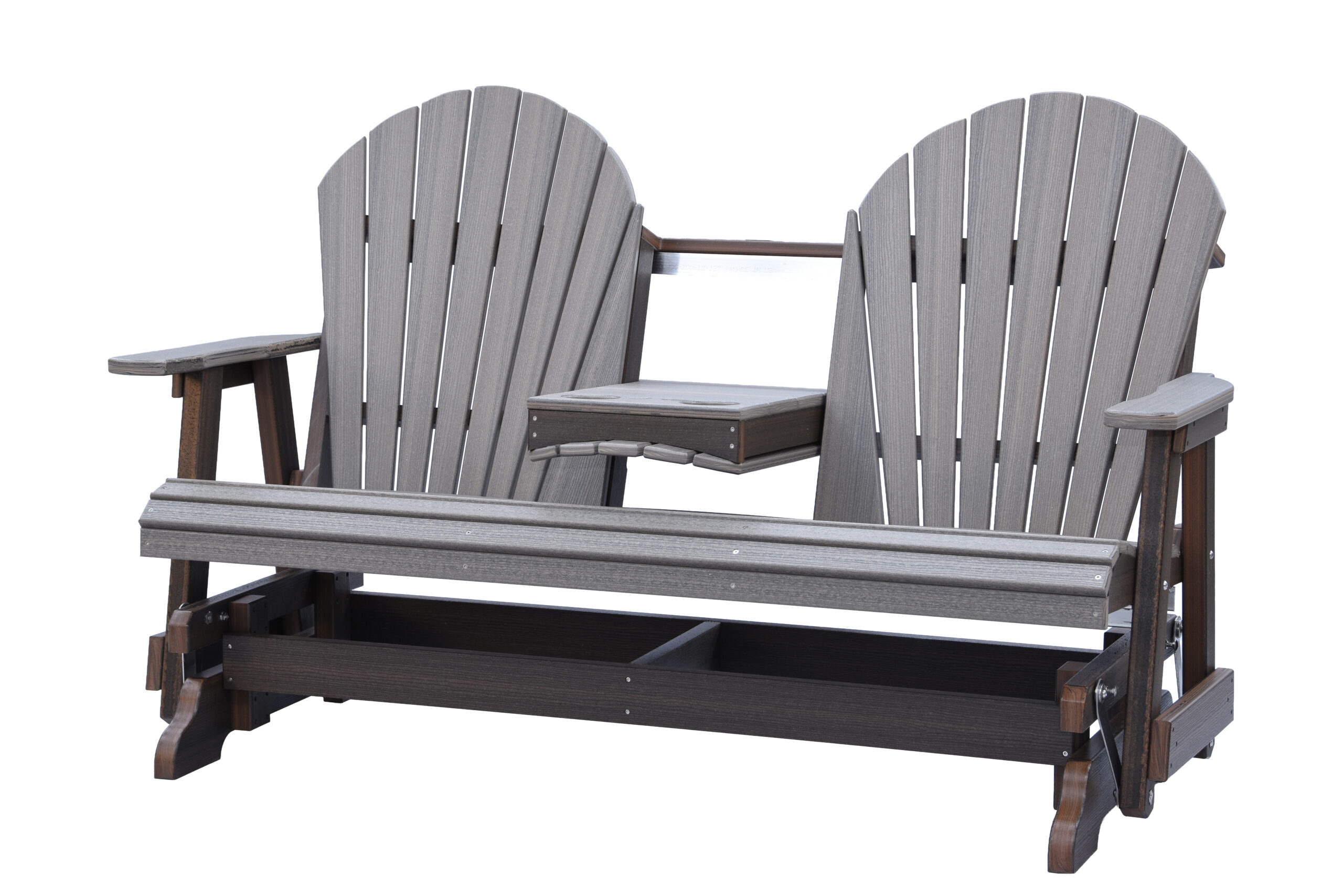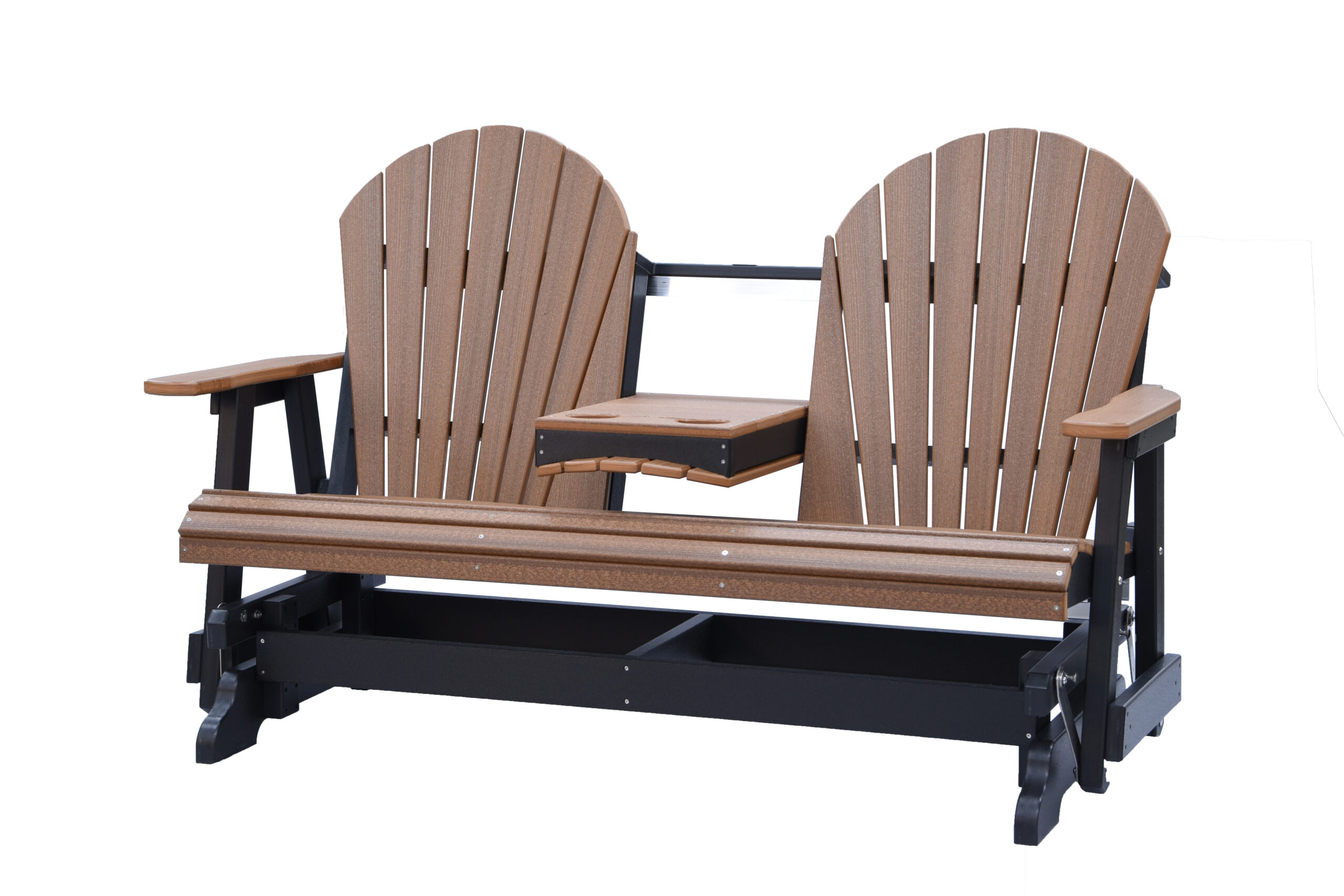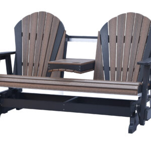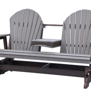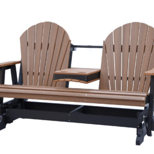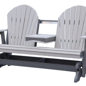 The Adirondack 5-Foot Glider Bench with Console combines smooth gliding motion, generous seating, and added convenience. Designed to comfortably seat two, the center console includes two integrated cup holders, making it ideal for porches, patios, and outdoor gathering spaces.