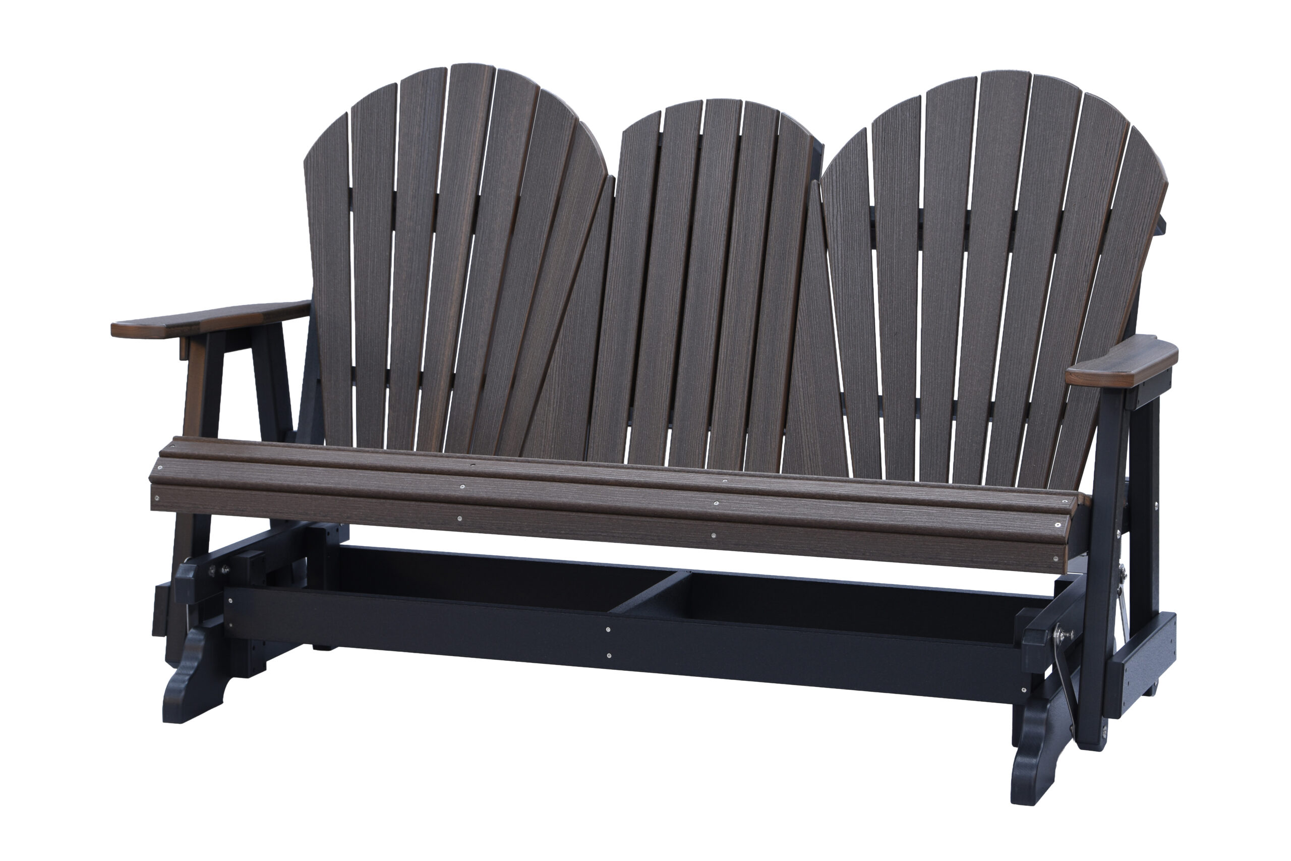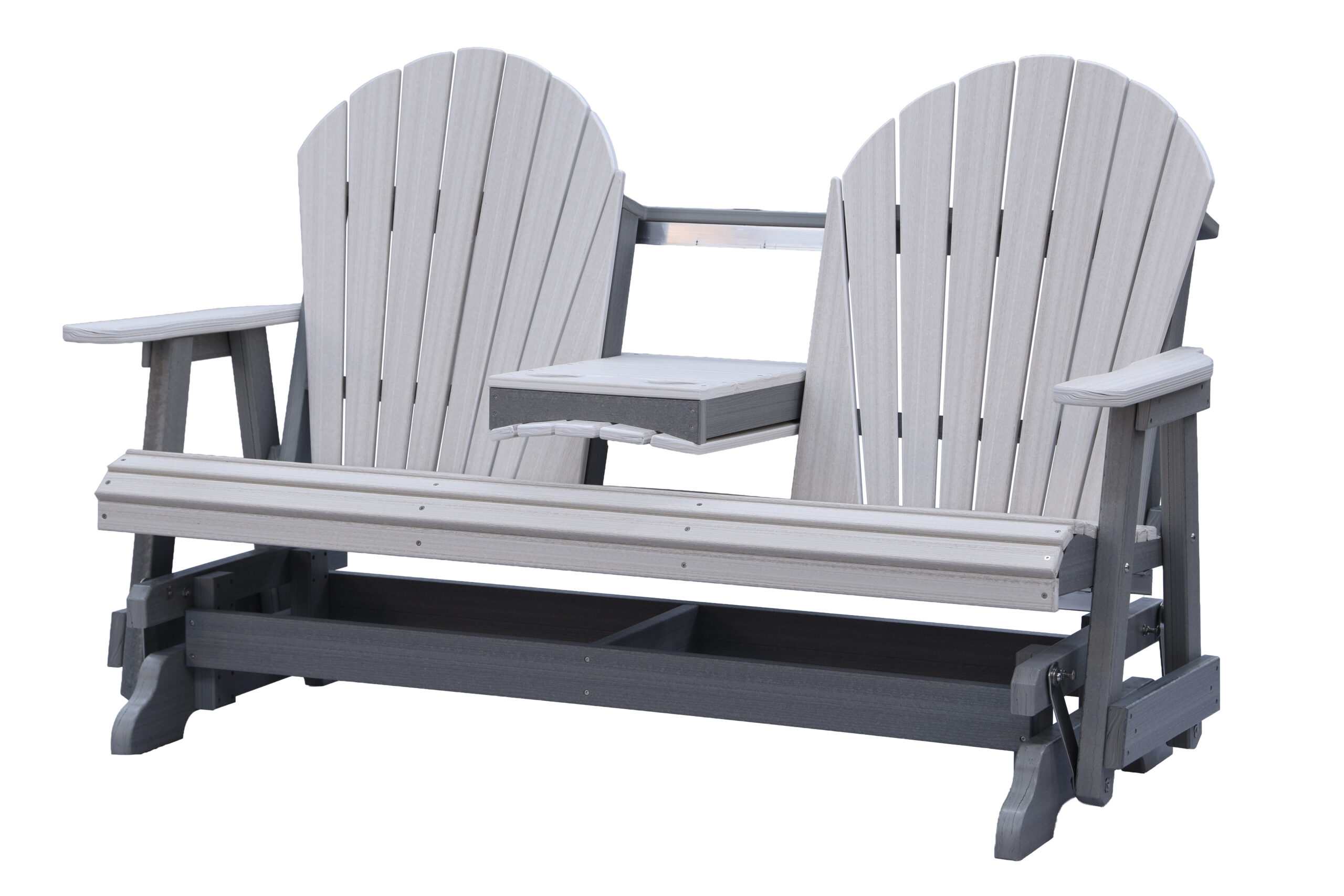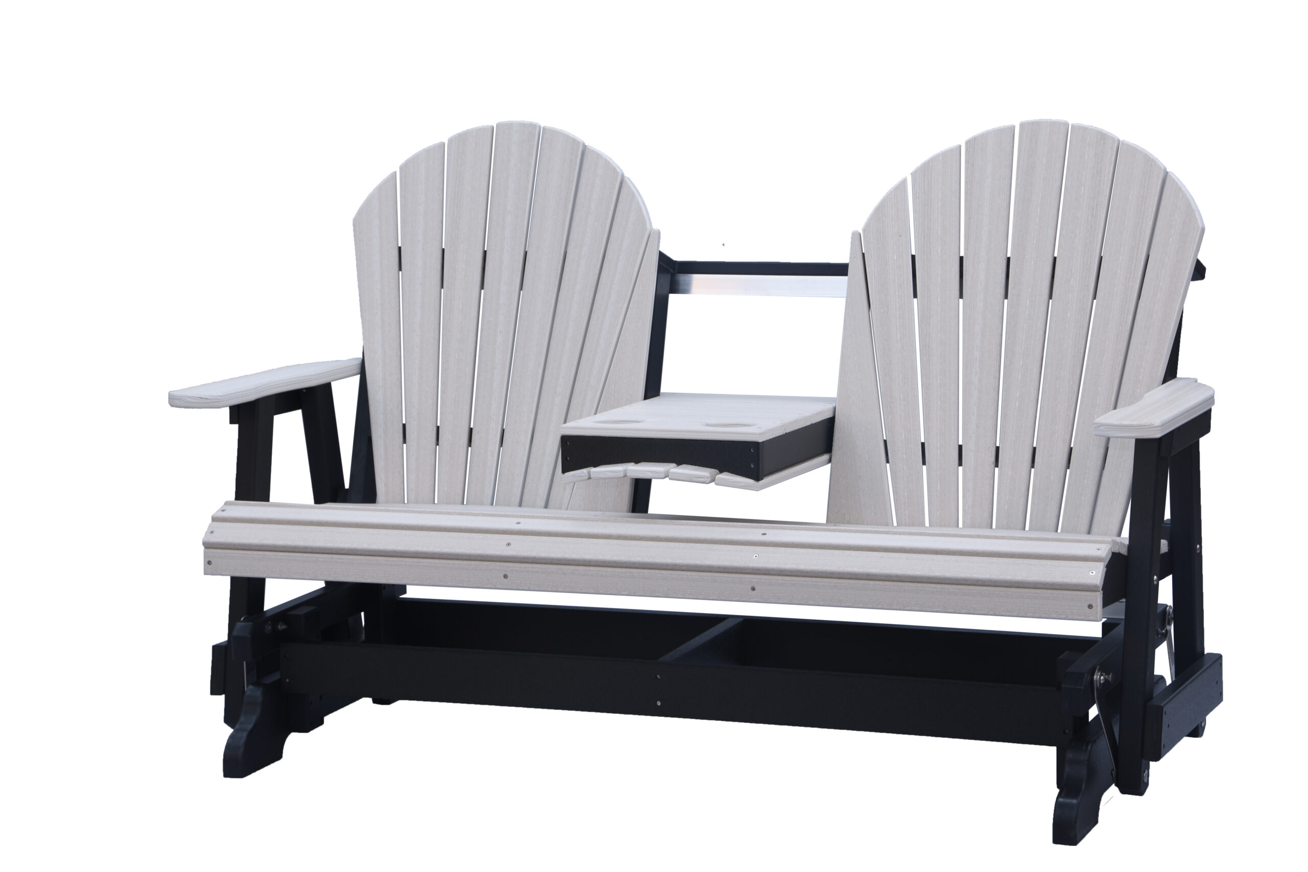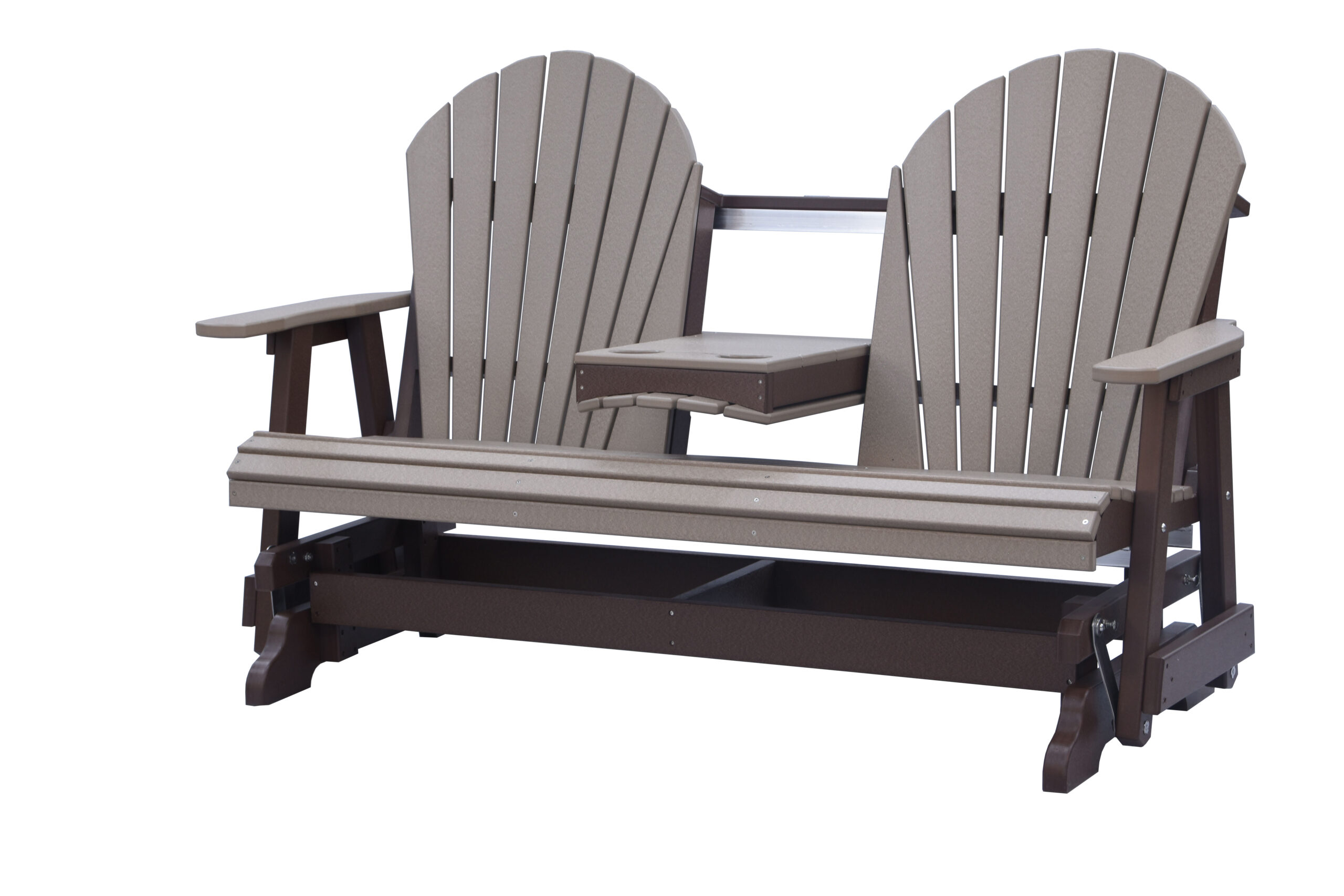 The Adirondack 5-Foot Glider Bench with Console combines smooth gliding motion, generous seating, and added convenience. Designed to comfortably seat two, the center console includes two integrated cup holders, making it ideal for porches, patios, and outdoor gathering spaces.